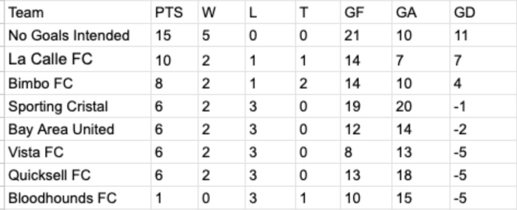9:00 AM: La Calle FC vs Bloodhounds FC: La Calle FC: 4-2